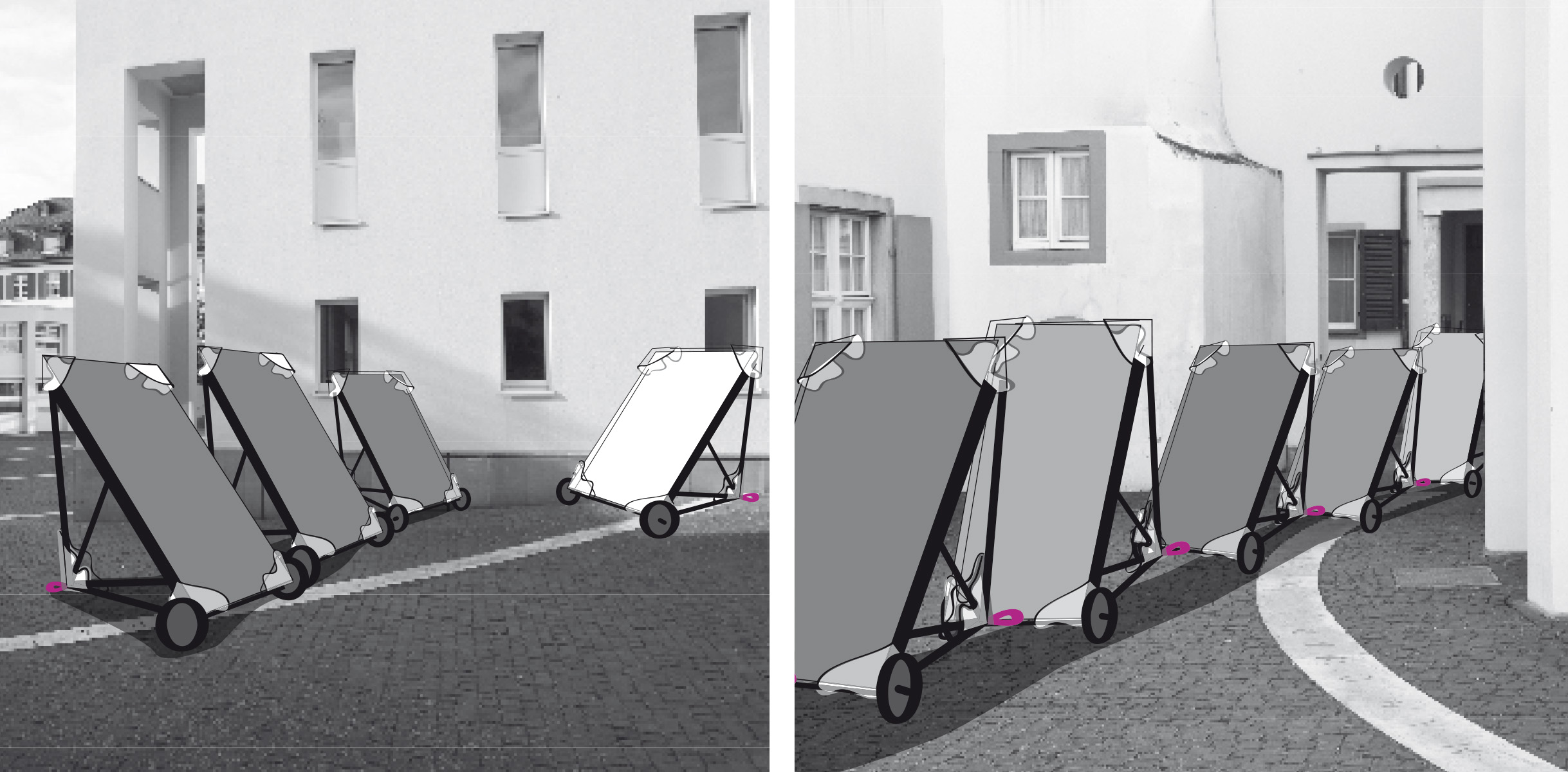 Dem Ressourcenverschleiss möchten wir die Wiederverwendung entgegenhalten. Der Bau eines Unterstands, einer Bühnen- oder Werbewand soll mit wenigen Handgriffen unter Zuhilfenahme einer Makita aufgestellt werden können.