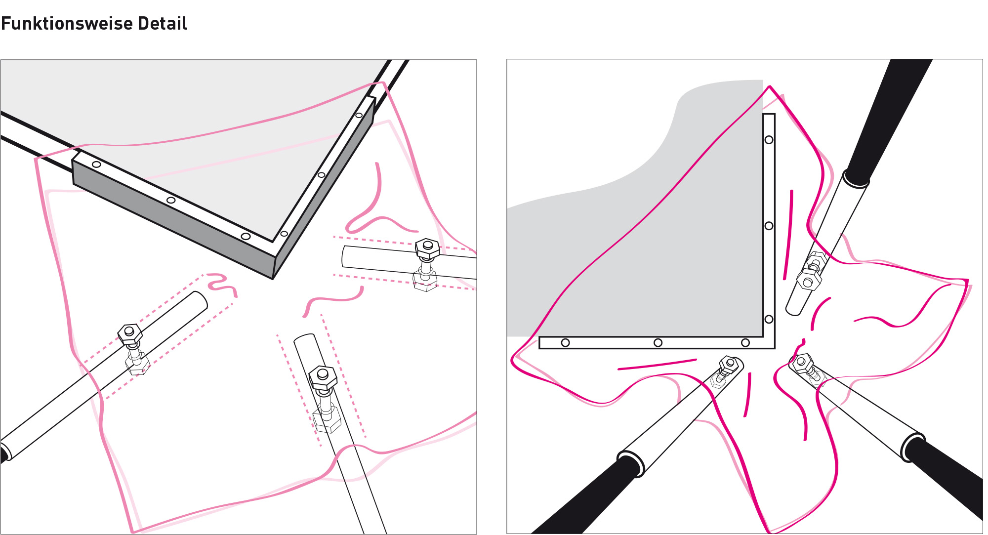 Dem Ressourcenverschleiss möchten wir die Wiederverwendung entgegenhalten. Der Bau eines Unterstands, einer Bühnen- oder Werbewand soll mit wenigen Handgriffen unter Zuhilfenahme einer Makita aufgestellt werden können.